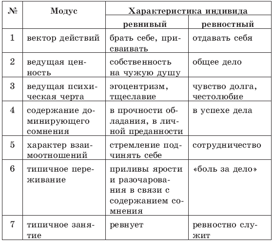 Общим здесь является то, что оба индивида отдают «все» душевные силы и свое внимание – но разному. Ревнивый служит своему себялюбию, ревностный – общему делу , долгу, Родине, верующий – Богу. В срав нении с ревностным индивидом ревнивый выглядит недостойно. При этом ревность, в первом ее понимании, может становиться содержанием сексуального невроза – если к тому есть основания, но может выражать и изначальные дефекты личности. Она не отменяет способностей индивида, одаренности, творческого потенциала (в том числе – и поэтического!), но интенсивно отравляет жизнь и самому ревнивому, и всем, кто его окружает, а уж объекту его притязаний – и вовсе. Таким образом, мышление и сознание ревнующего отравлены содержанием доминирующего в психике сомнения, а его эмоциональная сфера – разрушительной энергией неудовлетворенной потребности.